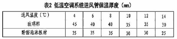 3.1.4低溫空調系統運風管保溫厚度見表2。