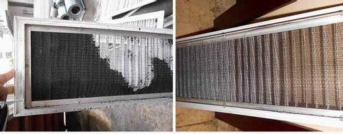 1、打開機組的檢修門,拆下新風機組中空氣濾清箱過濾器的過濾網(wǎng),如過濾網(wǎng)為金屬材質(zhì),則采用清水加堿性洗滌劑清洗干凈;如過濾網(wǎng)為棉布材質(zhì),則采用吸塵器進行灰塵清理。
