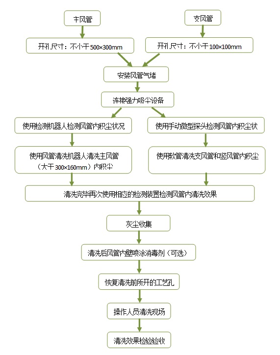 (2)檢測清洗后的風道內(nèi)應目測無明顯殘留灰塵、無工程垃圾、管壁無積垢。