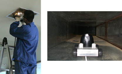 (7)將檢測機器人或微型攝像頭放入風管內(nèi)做清洗前檢測錄像。