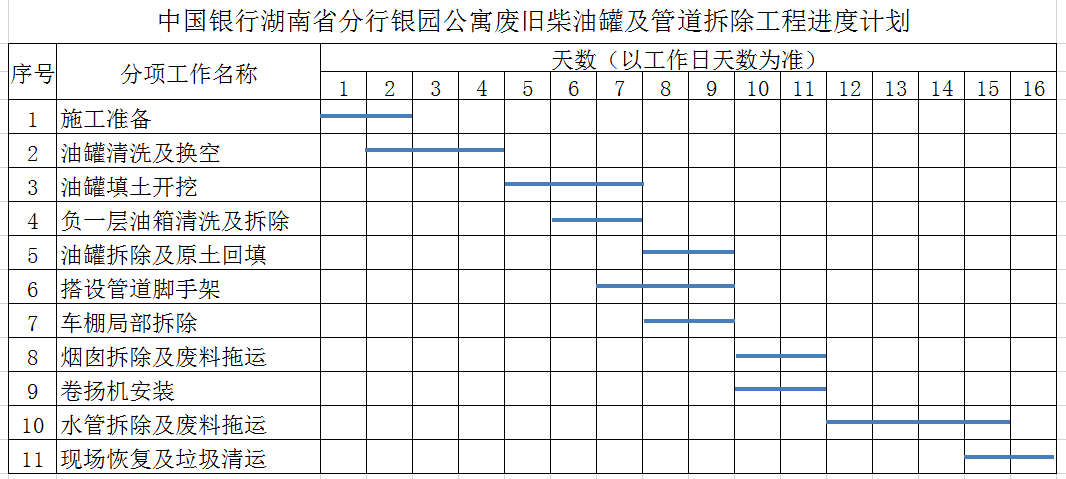 按照進度計劃安排,施工計劃工期為16個工作日。