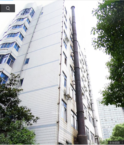 原煙囪(焊接鋼管),管徑約為900mm。沿小區2棟北外墻靠東豎向安裝,從負一層一直到樓頂,總高度約36米。