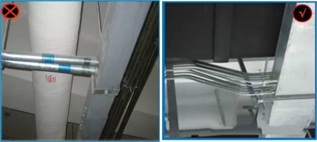 在機電安裝工程施工過程當中,由于施工隊伍的人員素質參差不齊,同時缺乏施工規范的基本理論及相關實踐知識,加上管理層對工程質量要求比較松懈,創優理念不足等因素,因此工程質量總是會有屢見不鮮的各種問題存在。以下是安裝老師傅通過對工程實例的研究,并總結安裝工程中那些常見的質量問題,以錯誤做法與正確做法進行對比展示的方式,非常明了,分享給大家以供參考借鑒!