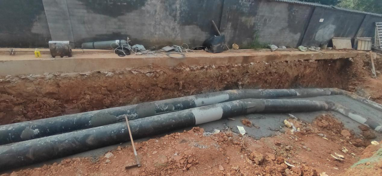 項目特點:開發(fā)商合同交房日期早已確定,安裝施工工期緊、安全施工管理要求嚴(yán)、土建預(yù)留供回水管道孔洞標(biāo)高位置不準(zhǔn)、入戶及管道井管道、閥門、配件安裝高度非常有限,市政道路管道施工協(xié)調(diào)城管復(fù)雜,多工種地下室交互施工環(huán)境極差 ,施工隊伍管理工作難度大。合同工期3個月,本項目于2024年10月完工。