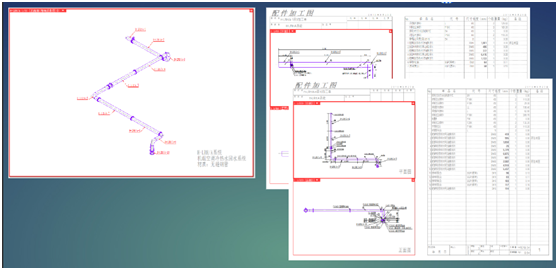 3) 導出管道分段加工圖紙和下料圖,并將圖紙交付工廠照圖加工預制,加工完成后按照現場施工節點逐次進場,進行裝配。