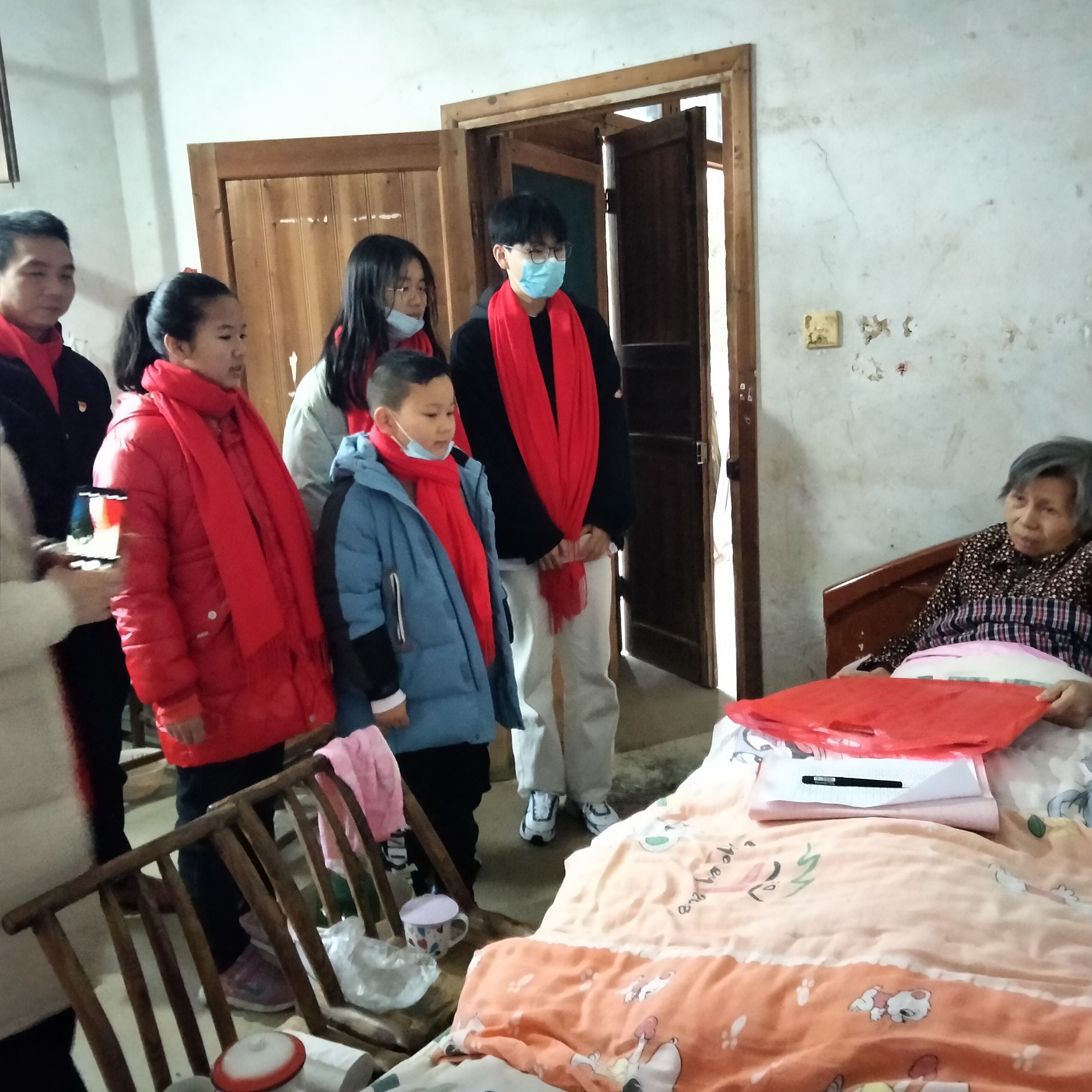 第三組志愿者來到金花坳組王建輝老人家中,老人的老公今年患重病去世,其無親屬子女,身患多種老年疾病,志愿者們奉上愛心紅包和禮包,祝愿老人家早日康復,家庭早日過上幸福生活;