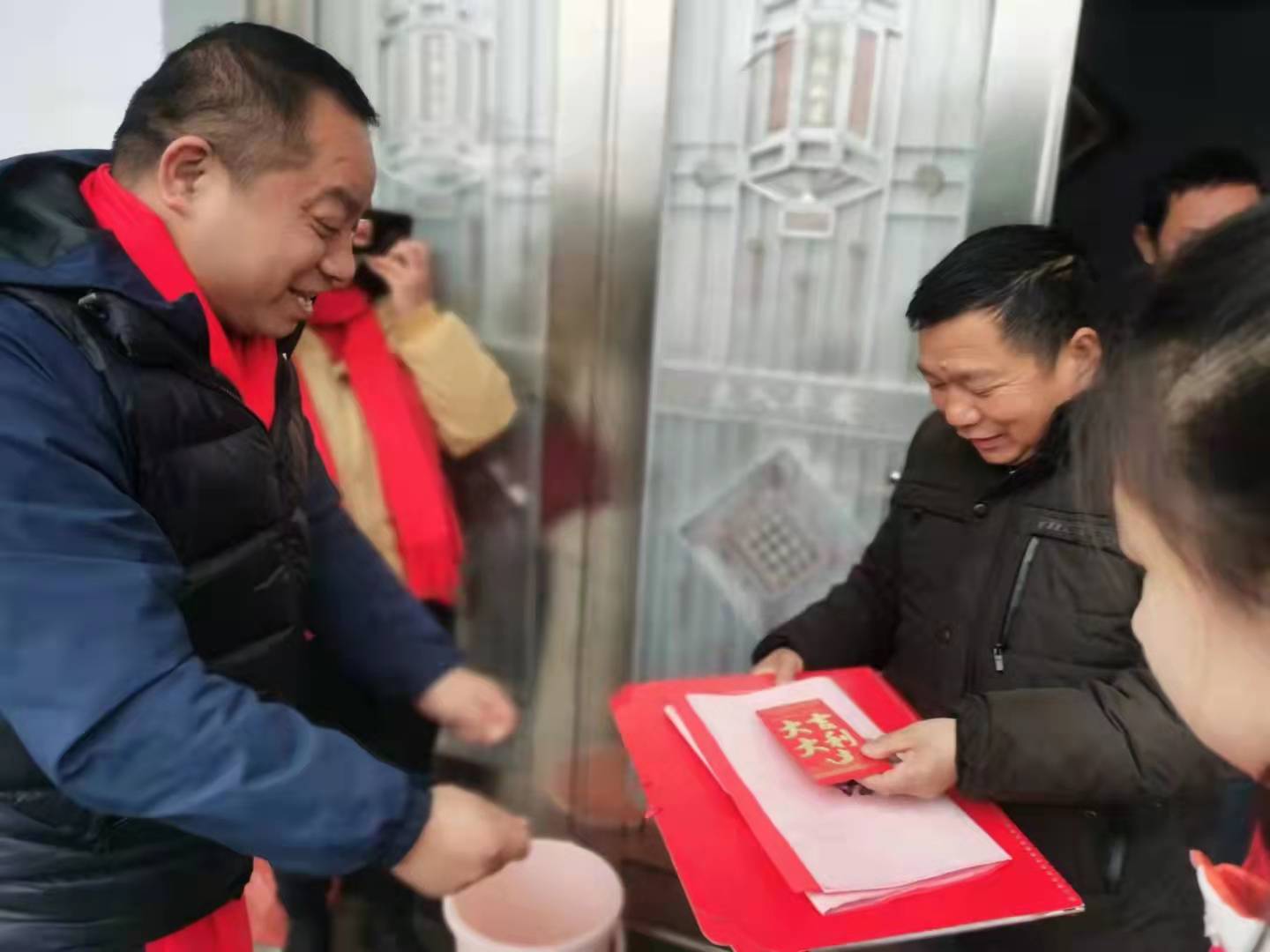 “感謝星澤公司,感謝你們多年對我們黃橋村村民的關懷與幫助”!連續五年慰問下鄉,黃橋村范書記和公司孫書記已經儼然是老朋友了,一番簡短的寒暄后,范書記將提前選定的20戶扶貧對象作了簡單分組,每小組負責慰問五戶家庭,慰問組同志們為每戶準備了一個愛心紅包,一幅手寫隊聯,一幅“?!弊謷鞖v,在黃橋村村委同志們的帶領下,公司黨員同志們開始分頭行動。