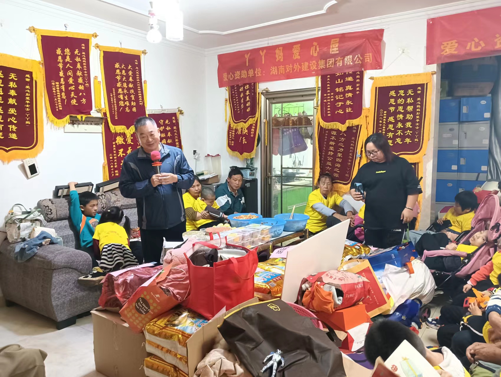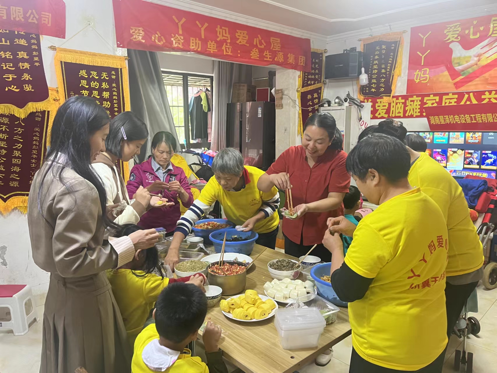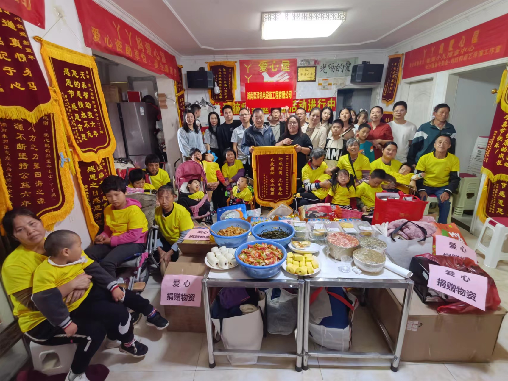 公司全體員工在孫逢春總經(jīng)理的帶領(lǐng)下,前往長沙縣湘龍街道“盛地春天里”關(guān)愛腦癱兒童公益組織“丫丫媽媽愛心屋”,看望在這里做康復(fù)治療的“慢天使”,慰問這些困難腦癱患兒家庭。公司為他們帶來了大米、肉、抽紙、衣物、鞋子、生活用品等生活物資并和這些患兒家屬一起包餃子,共進(jìn)午餐,為他們獻(xiàn)出一份自己的一份愛,將這份愛傳遞給小朋友們!