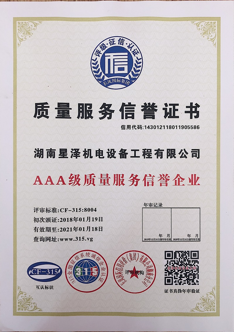 國家權威機構通過認證、審查針對我公司的信用記錄、經營狀況、財務指標、發展前景,結合國家及地方政府相關政策及現狀、本著公平、公正、獨立、客觀、科學的原則,評定我公司綜合信用等級為:AAA級