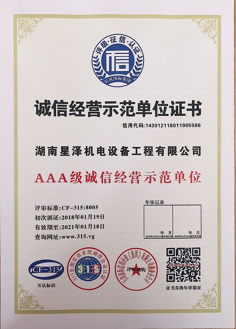 國(guó)家權(quán)威機(jī)構(gòu)通過認(rèn)證、審查針對(duì)我公司的信用記錄、經(jīng)營(yíng)狀況、財(cái)務(wù)指標(biāo)、發(fā)展前景,結(jié)合國(guó)家及地方政府相關(guān)政策及現(xiàn)狀、本著公平、公正、獨(dú)立、客觀、科學(xué)的原則,評(píng)定我公司綜合信用等級(jí)為:AAA級(jí)
